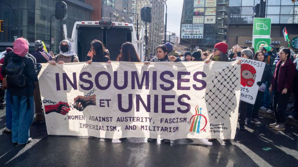 « Chez nous, le budget de guerre de Mark Carney et l’austérité de la CAQ accélèrent le déclin de nos services publics. Les institutions publiques de garde d’enfants, de soins de santé et d’éducation ont été obtenues grâce aux luttes des femmes de la classe ouvrière au Québec et au Canada au cours du XXe siècle. Ce sont les femmes qui subiront le plus durement la destruction de ces services. »